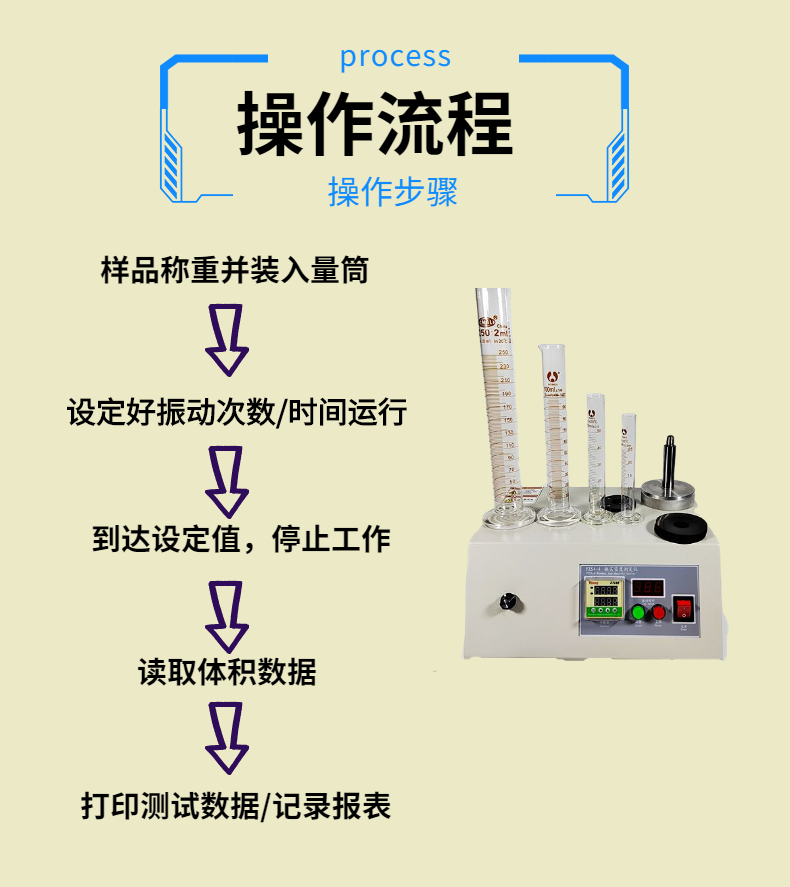 2.粉體振實(shí)密度儀操作流程及步驟: