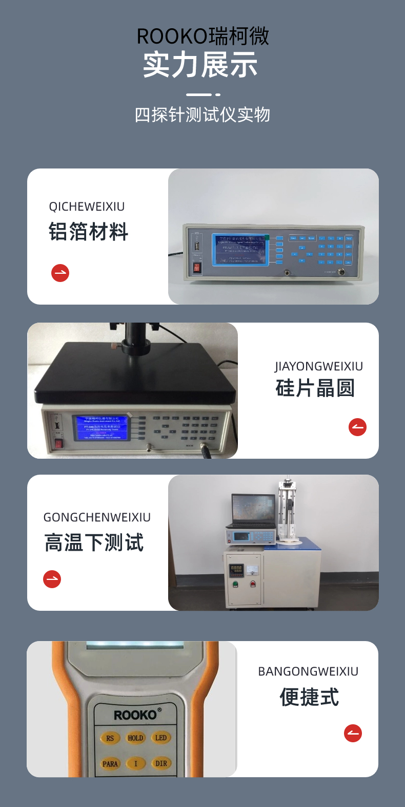 半導(dǎo)體電阻率測試儀是用于測量半導(dǎo)體材料電阻率、方塊電阻(薄層電阻)以及金屬薄層電阻的儀器。它根據(jù)四探針測試原理,可以用于片狀、棒狀等半導(dǎo)體材料的測量。這類測試儀具有測量精度高、范圍廣、穩(wěn)定性好、結(jié)構(gòu)緊湊、使用方便、價格低等特點。