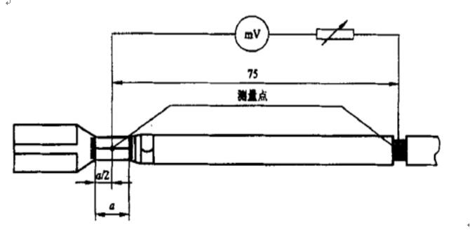 如上示兩圖中,圖1導線首端帶有端子,測量75mm長帶端子導線的兩端壓降,記錄數據備用;圖2中導線不帶端子,直接測量75mm長導線的兩端壓降,記錄數據;,用圖1中測得的壓降減去圖2中測得的壓降即為被測端子的壓降。